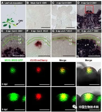 图1 植物病毒不能侵染WUS蛋白所在的干细胞区域及周边分化细胞