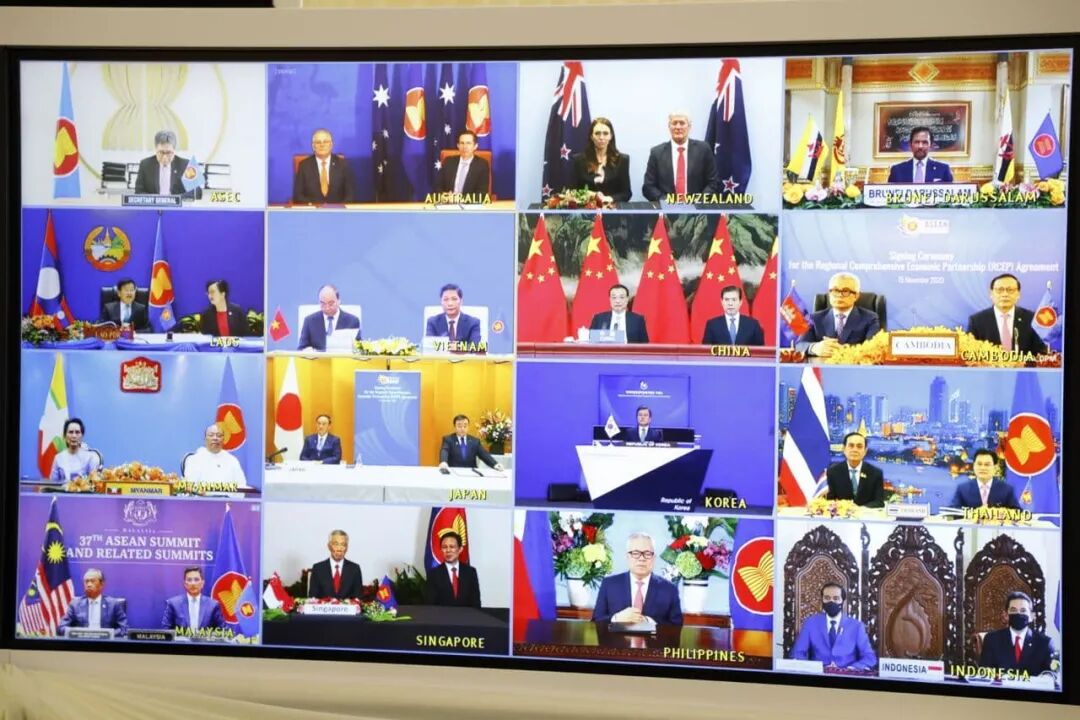 《区域全面经济伙伴关系协定》(RCEP)第四次领导人会议于15日以视频形式举行。会议期间,中国政府与东盟十国及日、韩、澳、新西兰的贸易部长共同签署《区域全面经济伙伴关系协定》。RCEP的签署标志着全球最大的自由贸易区成功启航,是东亚区域经济一体化新的里程碑。
